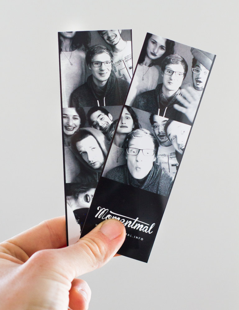Auf den ersten Blick sieht Momentmal aus wie eine klassische Fotobox. Doch auf den zweiten Blick zeigt sich ein spannender Unterschied: Die Fotobox schießt kein einfaches Foto, sondern zeichnet ein einsekündiges Schwarzweiß-Video des Besuchers auf. Danach druckt der Automat einen Ausschnitt der Videosequenz zusammen mit einem QR-Code aus, mit dem man auf einer eigens eingerichteten Website landet. Dort findet man sich dann unter den anderen Gesichtern des Events wieder.