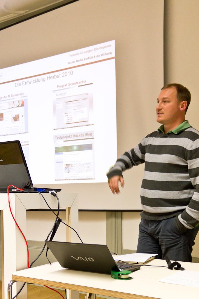 Weitere Mitglieder unseres Vereins begleiteten ebenfalls den guten Roland Hemmpel zu den nächsten Veranstaltungen in Leipzig und überzeugten sich selbst von der Attraktivität eines Webmontags an sich und für Halle im Besonderen. Bald stand unser Entschluss fest: Wir lassen den Hallenser Webmontag wieder aufleben. Nun stand die Planung an. Wann soll alles stattfinden, wer hält die Vorträge, welche Location ist am besten geeignet und wer kann uns dabei noch unterstützen? Für letzteren Punkt war schnell eine Antwort gefunden. Alf Jahn, ein vertrauter Bekannter aus Gordon und meiner Gründerzeit in Halle, Gründer von Aromicon hatte in früheren Zeiten den Webmontag Halle organisiert. Ein kurze Anfrage bei Ihm, ob er denn bereit wäre uns zu helfen wurde sofort mit einem klaren „Ja, na klar!“ beantwortet. Es konnte also losgehen. In Abstimmung mit den Machern des Webmontag Leipzig wurde der Termin auf den 28. November festgelegt. Alf Jahn organisierte die Räumlichkeiten im Designhaus und Roland Hemmpel’s Anfrage bei Thomas Giggold, PR-, Web- und Social Media Profi, war ebenfalls erfolgreich. Passend zum Thema „Blog trifft Soziale Netzwerke – Ein Spagat zwischen PR/Marketing und Mensch sein“, sollte ich über meine ersten Erfolge nach einem Jahr Bloggerei und Social Media Aktivitäten vortragen. Ein „Nein“ kam natürlich nicht in Frage.
